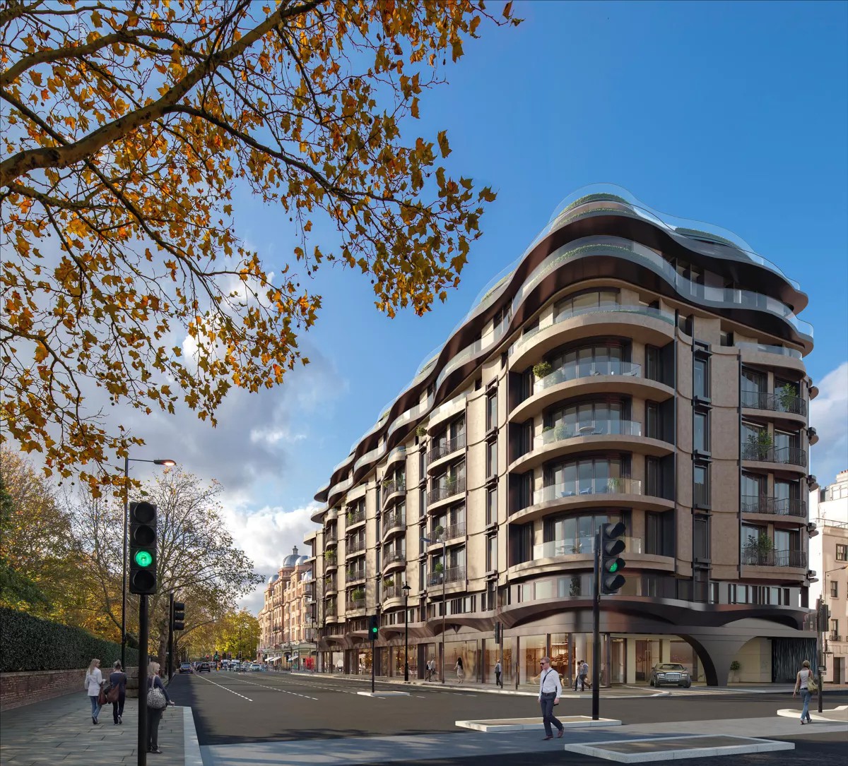 Park Modern Residences is a prime residential development located in the heart of London, adjacent to Hyde Park. The project is designed with meticulous attention to detail, taking into account the site's character and heritage, and its relationship to the surrounding historic landscape. The development offers 62 residences within the coveted Park Modern Conservation Area. The undulating façade of the building reflects the natural rolling landscape, while also extending and amplifying the design language of the adjoining terraced townhouses. The bowed sitting rooms within the residences establish a strong yet intimate connection with the park, providing residents with stunning views and a sense of closeness to nature. Overall, Park Modern Residences sets a new standard for luxurious and thoughtfully designed residential developments in London.