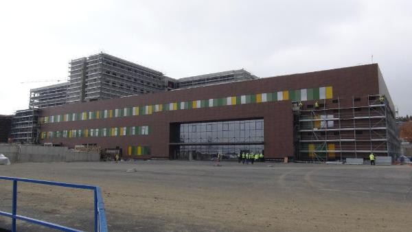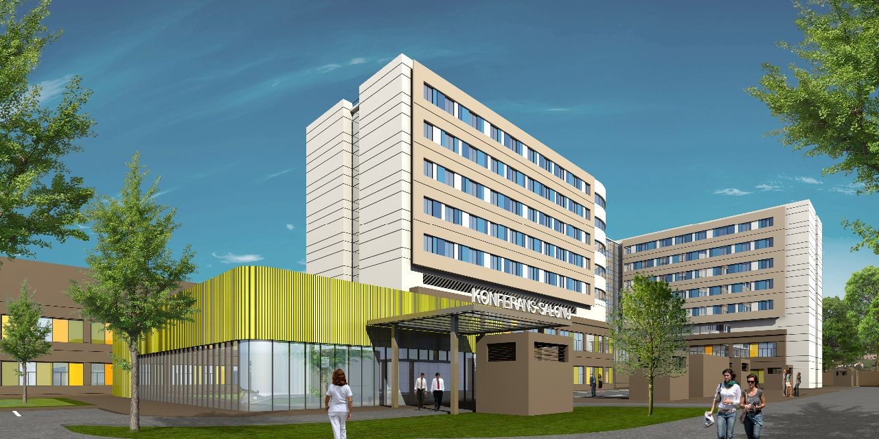 Main Hospital Block Consists of 11 floors in total, 2 Basement Floors, 1 Lower Entrance, 1 Higher Entrance, 3 Medical Floors, 4 Typical Bedroom Floors and 136.551 sqm.